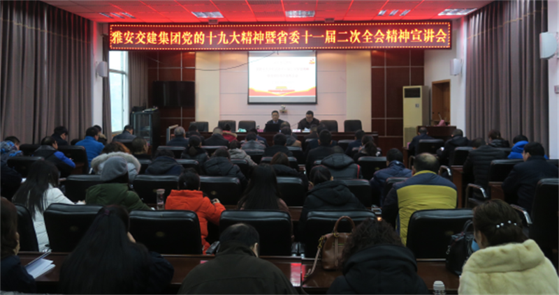 1月5日下午,交建集团举行专题宣讲会,集中学习党的十九大暨省委十一届二次全会精神。会议邀请雅安市委党校副校长杨国先同志作专题辅导,集团公司党委书记、董事长漆家华主持辅导会并讲话,交建集团全体党员、经营班子成员、中层干部参加学习。
