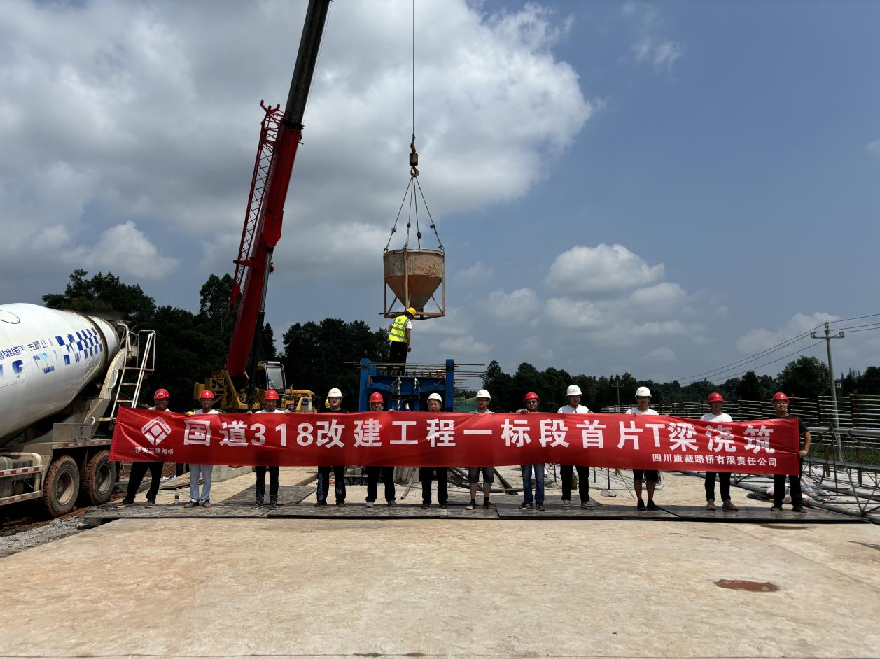国道318改建工程一标首片T梁成功浇筑 --威廉希尔集团路桥公司全力以赴吹响建设冲锋号