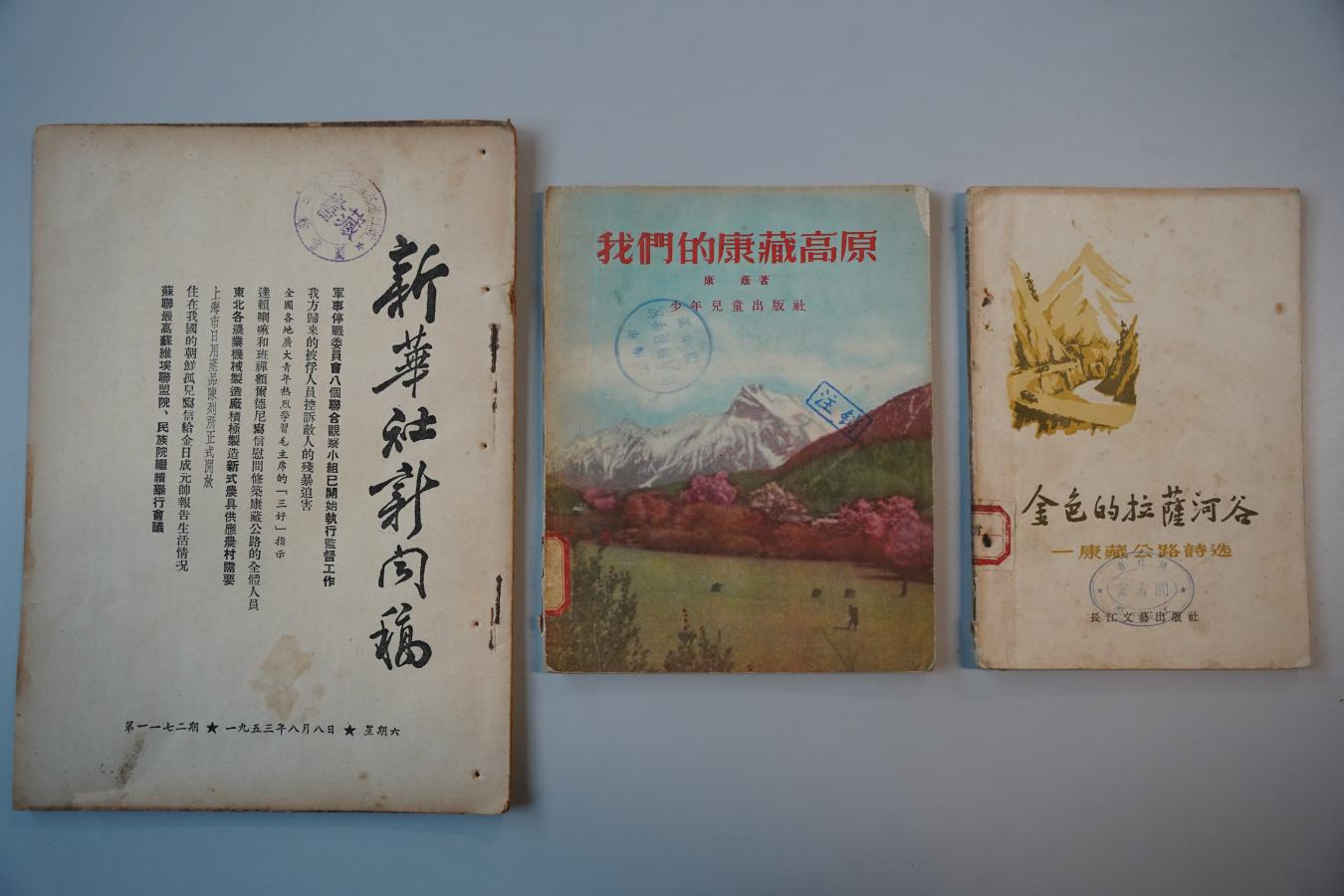 此次获赠文献具有重要历史价值,《金色的拉萨河谷(康藏公路诗选)》以诗歌形式记录了康藏公路(今川藏公路)建设者的奋斗历程,其中的不少诗篇被作曲家谱写成歌曲;《我们的康藏高原》着重描写了康藏公路的修筑历程,讲述了筑路英雄们的事迹及西藏和平解放后的新面貌;1953年8月8日发表的新华社新闻稿原件,以第一手资料还原了康藏公路修建期间的重要历史节点。