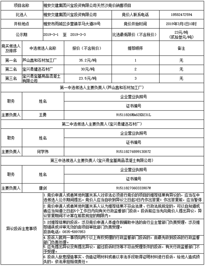 威廉希尔集团兴宝投资有限公司天然沙竞价销售项目公示