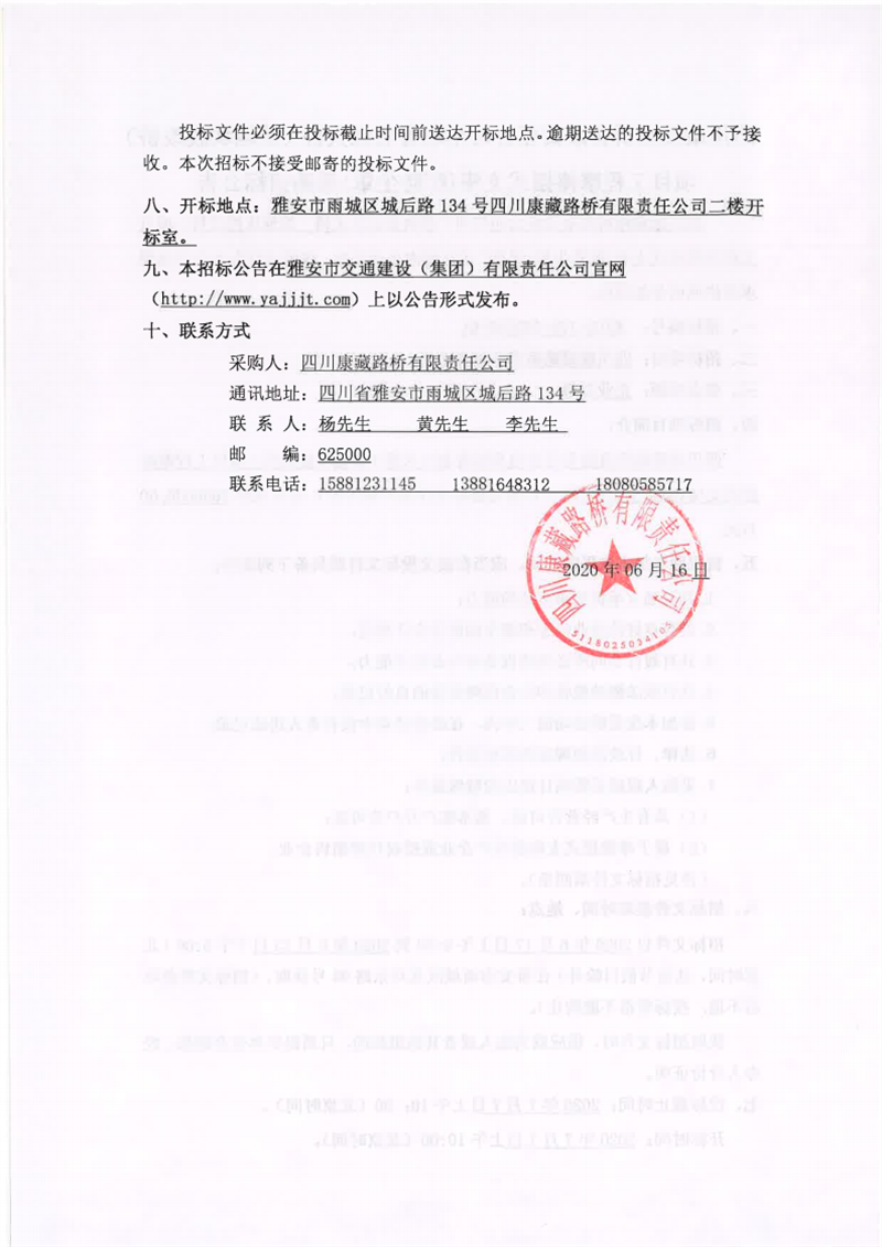四川康藏路桥有限责任公司草坝青衣江大桥(茶地坎渡改桥)项目工程摩擦摆式支座(配防尘罩)采购招标公告