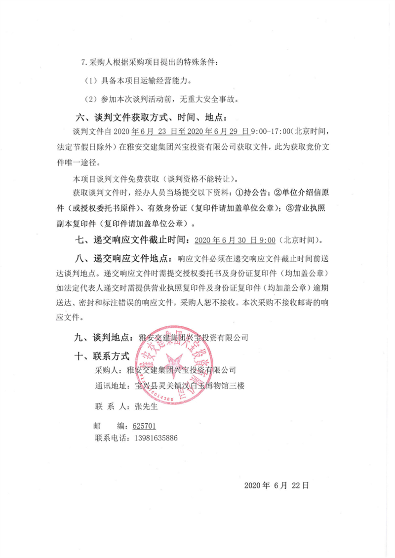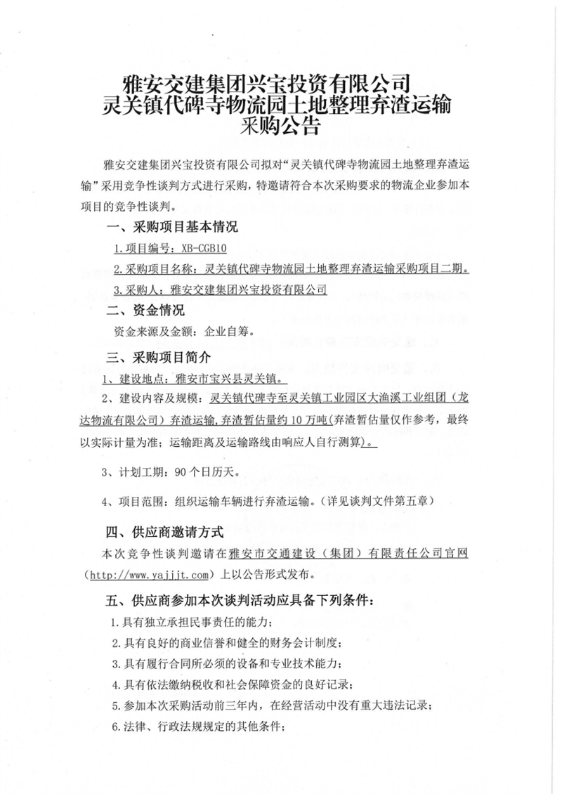 威廉希尔集团兴宝投资有限公司灵关镇代碑寺物流园土地整理弃渣运输采购项目二期竞争性谈判公告