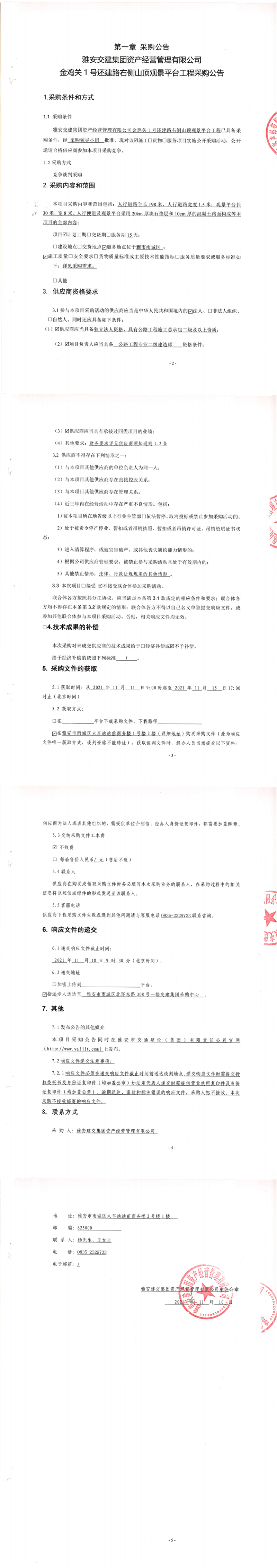 威廉希尔集团资产经营管理有限公司金鸡关1号还建路右侧山顶观景平台工程采购公告