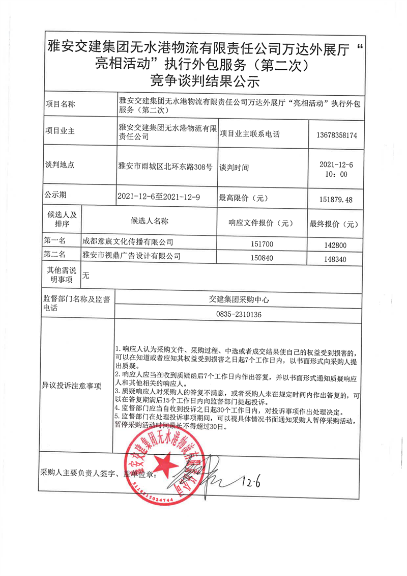 威廉希尔集团无水港物流有限责任公司万达外展厅“亮相活动”执行外包服务(第二次)竞争谈判结果公示
