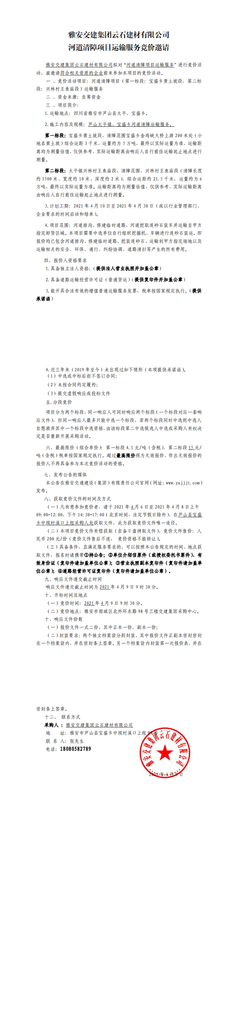 威廉希尔集团云石建材有限公司河道清障项目运输服务竞价公告