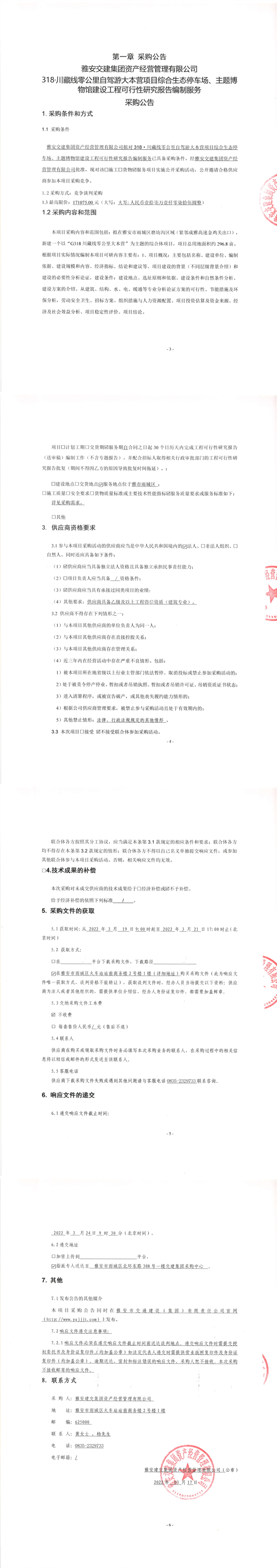 威廉希尔集团资产经营管理有限公司318.川藏线零公里自驾游大本营项目综合生态停车场、主题博物馆建设工程可行性研究报告编制服务采购公告