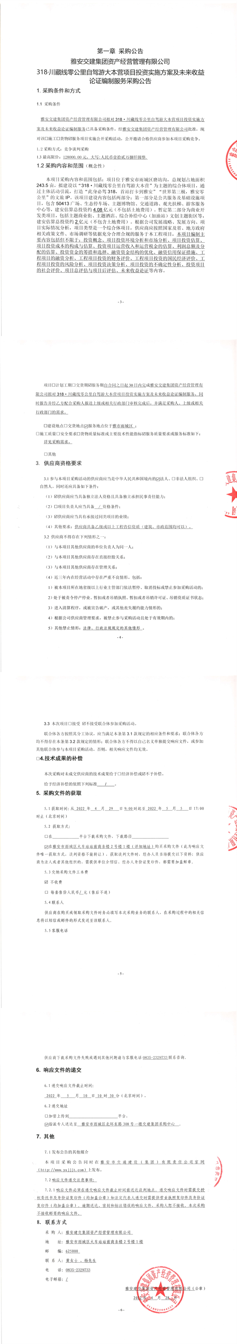 威廉希尔集团资产经营管理有限公司318·川藏线零公里自驾游大本营项目投资实施方案及未来收益论证编制服务采购公告