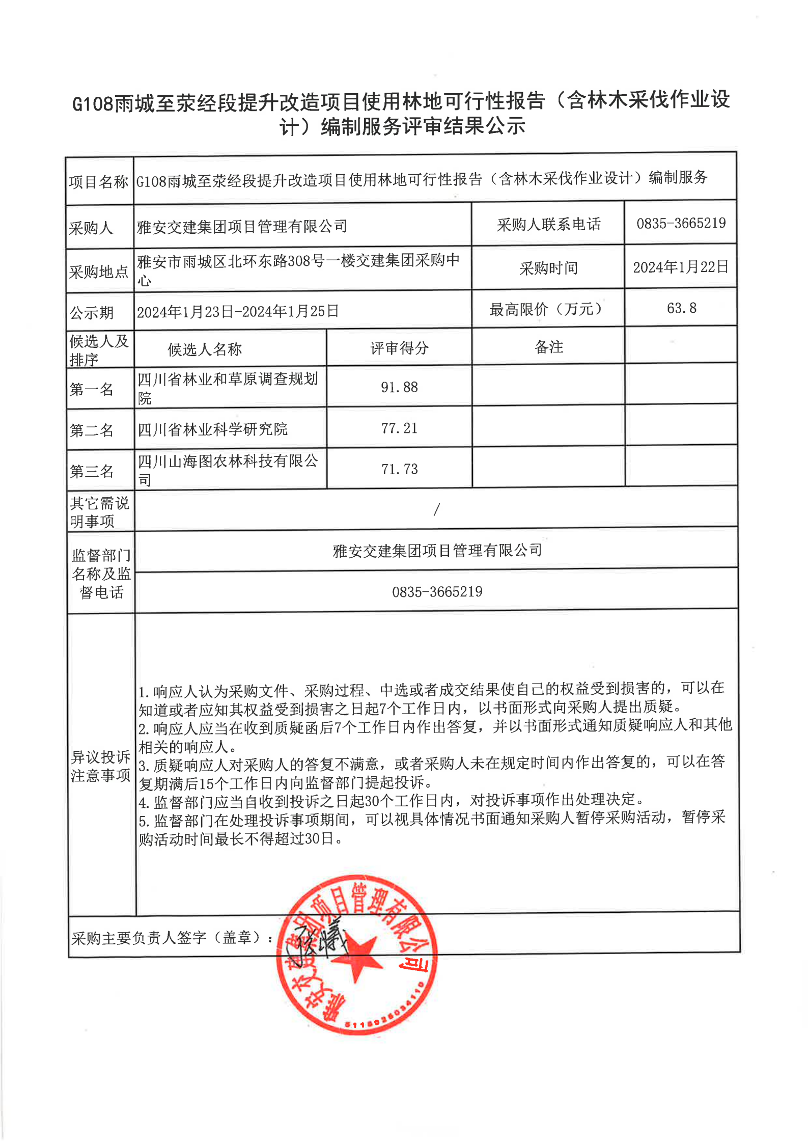 威廉希尔集团项目管理有限公司G108雨城至荥经段提升改造项目使用林地可行性报告(含林木采伐作业设计)编制服务评审结果公示