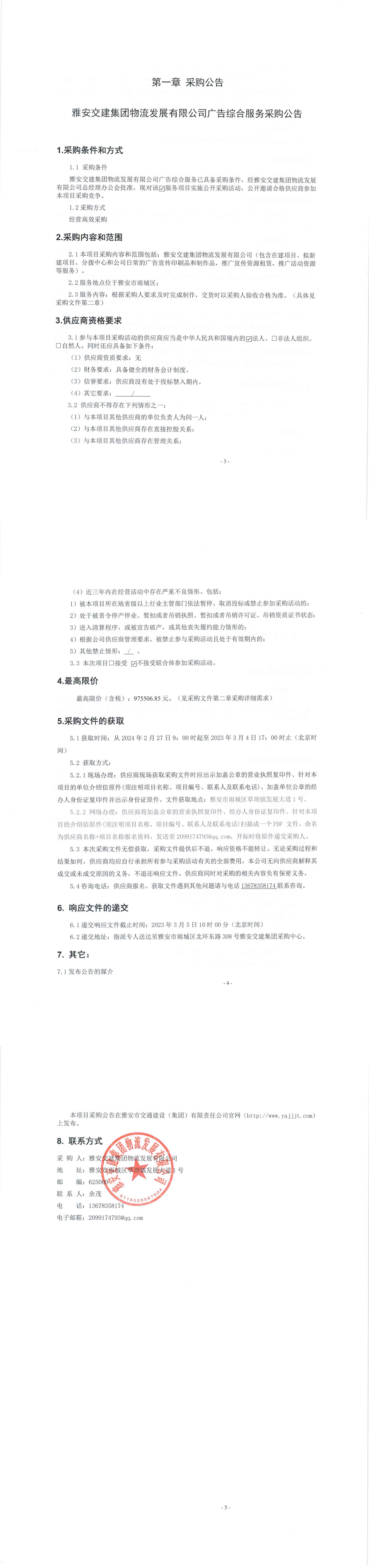威廉希尔集团物流开展有限公司广告综合服务采购公告