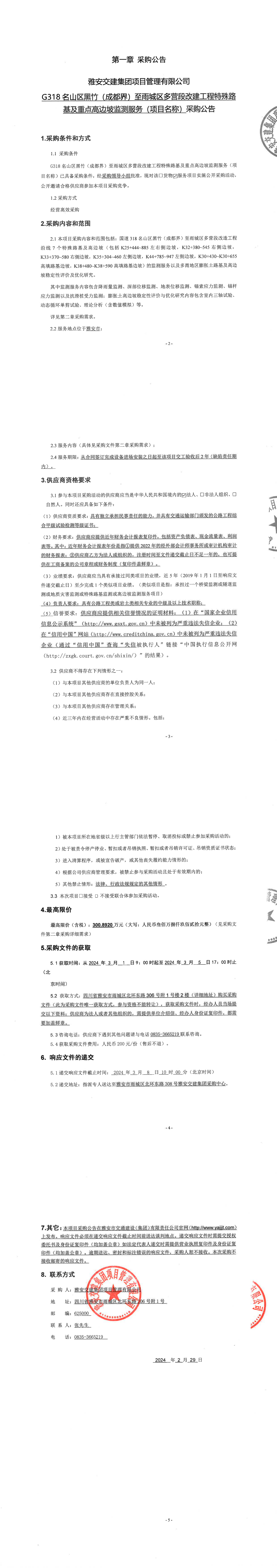 威廉希尔集团项目管理有限公司国道318名山区黑竹(成都界)至雨城区多营段改造工程的特殊及重点路基高边坡监测服务(项目名称)采购公告