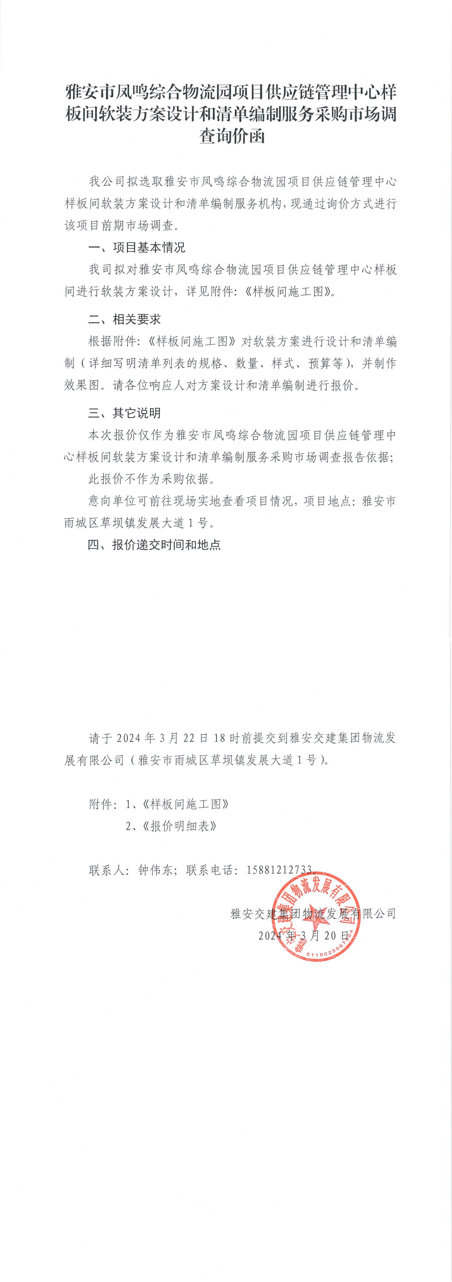 威廉希尔集团物流开展有限公司雅安市凤鸣综合物流园项目供应链管理中心样板间软装方案设计和清单编制服务采购市场调查询价函