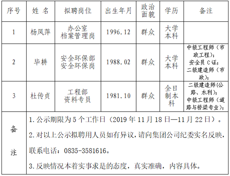 威廉希尔集团所属子公司拟聘用人员公示(兴宝公司、丹石公司)