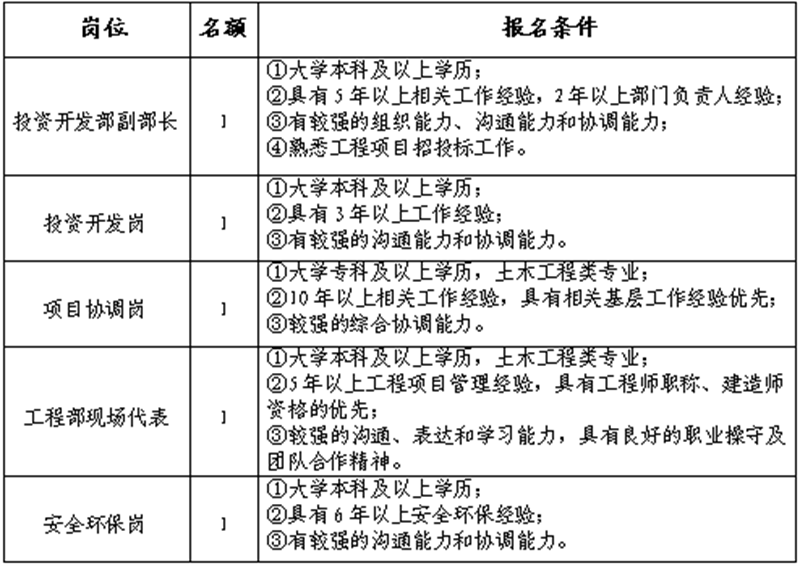 三、报名岗位、名额、条件