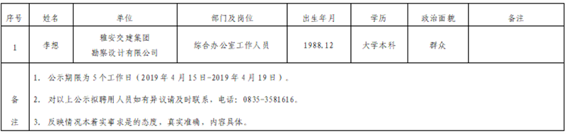 威廉希尔集团子公司拟聘用人员公示(勘察设计公司)