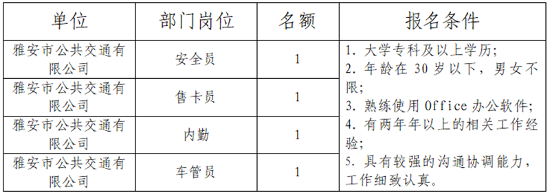 威廉希尔集团关于公开招聘所属子公司工作人员的公告(公交公司)
