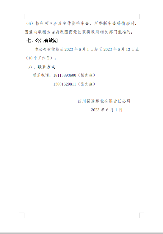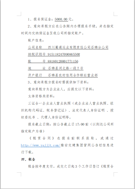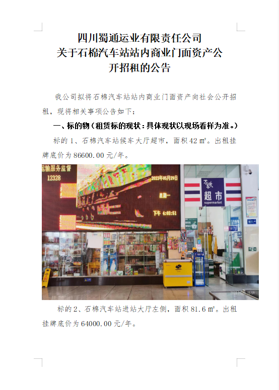 四川蜀通运业有限责任公司关于石棉汽车站站内商业门面资产公开招租的公告