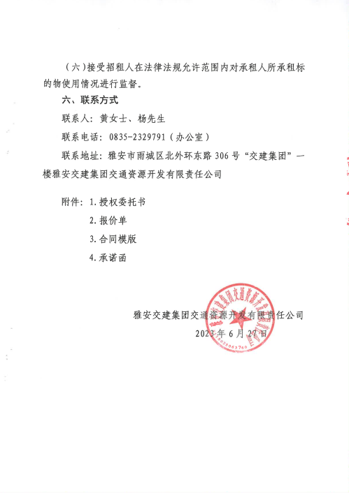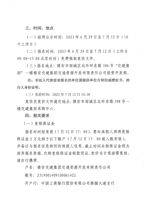 威廉希尔集团交通资源开发有限责任公司雨名快速通道名山服务区1号楼招租公告附件