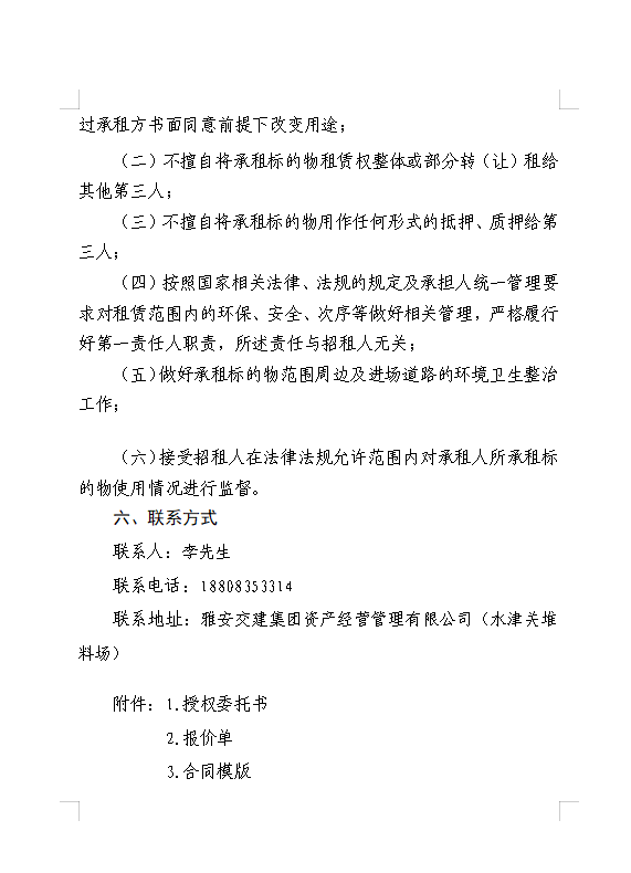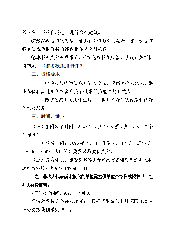 威廉希尔集团资产经营管理有限公司 雅安市雨城区大兴镇水津关堆料场龙溪村四组和八组部分闲置临时用地招租公告附件