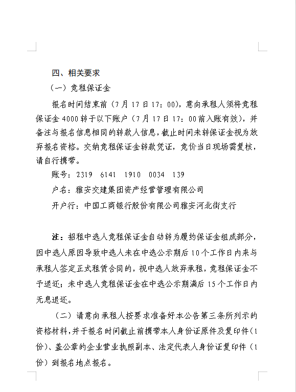 威廉希尔集团交通资源开发有限责任公司关于雅安市雨城区姚桥21-01、水中坝安置房西侧地块招租的公告