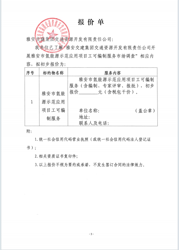 威廉希尔集团交通资源开发有限责任公司雅安市氢能源示范应用项目工可编制服务市场调查公告