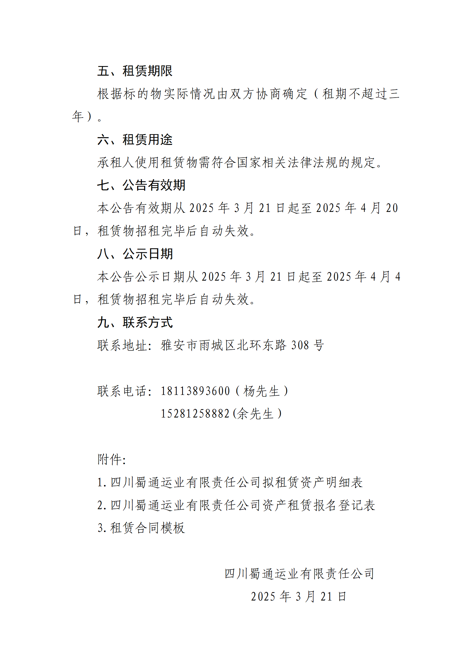 四川蜀通运业有限责任公司 关于康藏路261号附22号、平安路30号两处门面进行挂网招租的公告