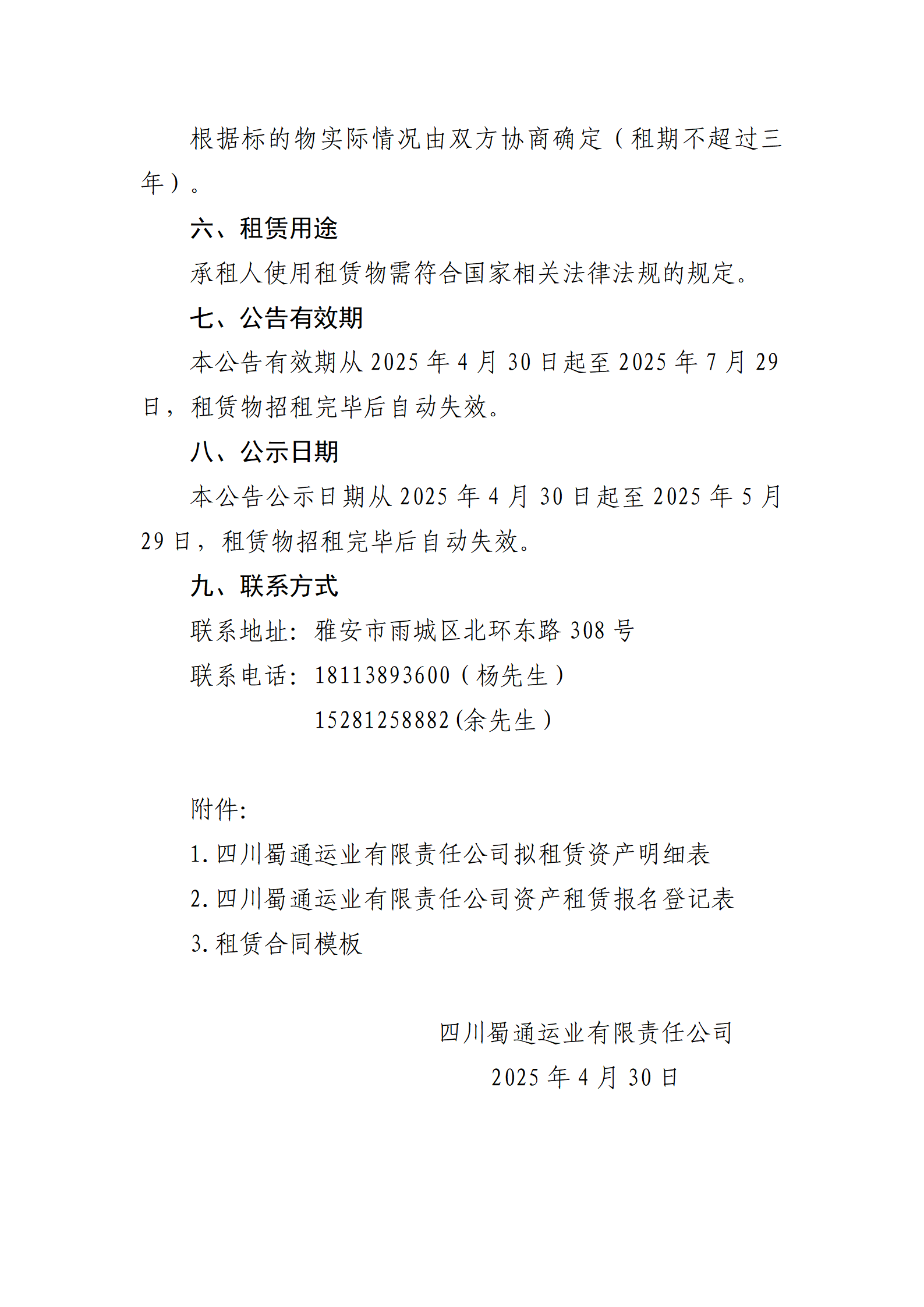 四川蜀通运业有限责任公司 关于九襄汽车站出口右侧维修车间旁边闲置场地进行挂网招租的公告