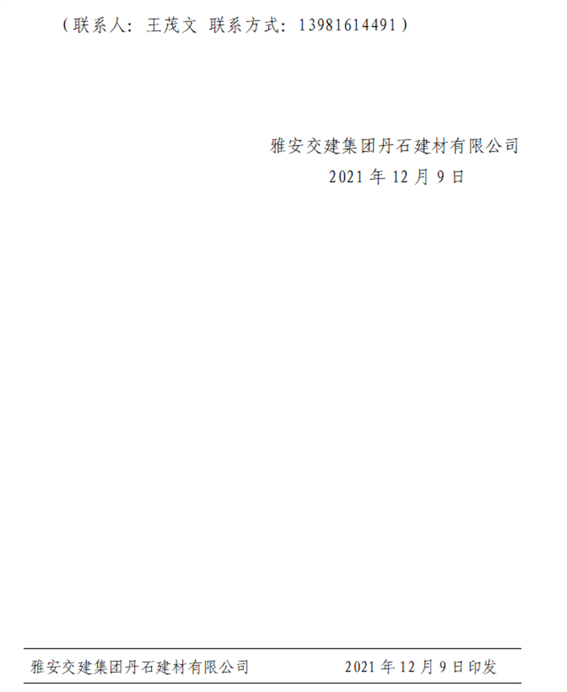 威廉希尔集团丹石公司关于调整砂石成品骨料销售价格的通知(2021.12.9)